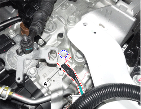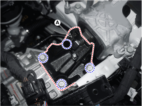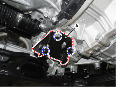 Снимите болты крепления опорного кронштейна автоматической коробки передач (А).