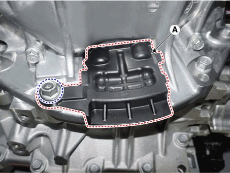 Снимите опорный кронштейн автоматической коробки передач (А).