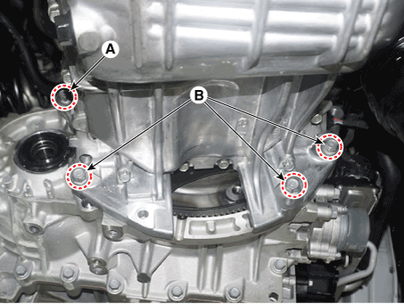 Снимите болты крепления гидротрансформатора (А), вращая коленчатый вал. по часовой стрелке.