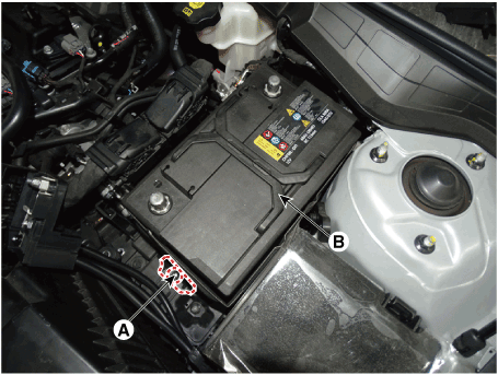 Установите амперметр клещевого типа на отрицательную (-) клемму аккумуляторной батареи.