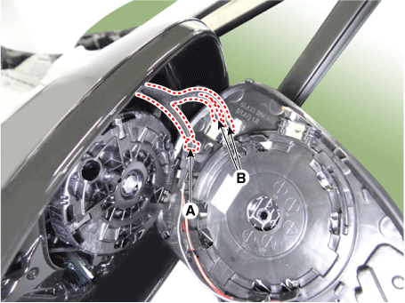 Отсоедините разъемы отопителя (А) и разъем индикатора BCW (В).