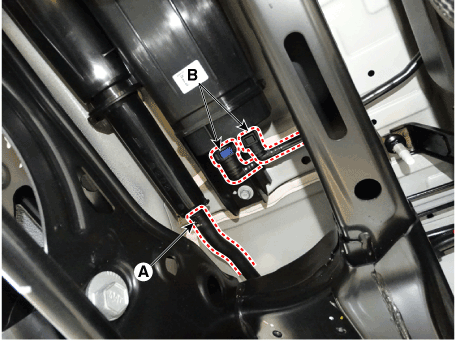 Снимите втулку стабилизатора поперечной устойчивости (А).