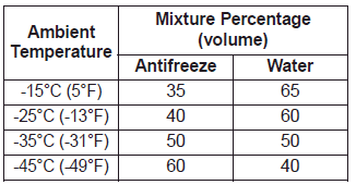 Не используйте раствор, содержащий более 60 % антифриза или менее