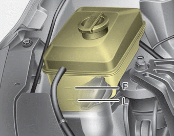 Уровень охлаждающей жидкости должен находиться между отметками F и L на боковой стороне охлаждающей жидкости.