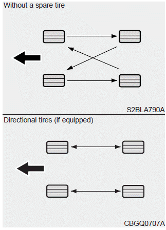 При перестановке шин проверяйте их на неравномерный износ и повреждения. Ненормальный износ обычно из-за неправильного давления в шинах, неправильной установки колес, разбалансировки колес, резкое торможение или резкий поворот. Ищите неровности или выпуклости на протекторе или сбоку шин. Замените шину, если вы обнаружите одно из этих условий. Замените шину если видна ткань или шнур. После поворота обязательно привести передние и задние давление в шинах в соответствии со спецификацией и проверьте затяжку гаек.