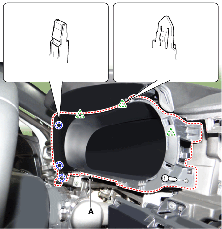 Ослабьте крепежные винты и снимите лицевую панель кластера (А).
