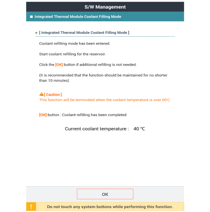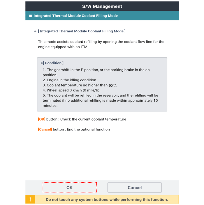 Выберите «Режим заправки охлаждающей жидкостью ITM» в «Управлении программным обеспечением автомобиля».
