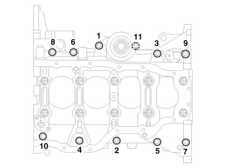 Всегда используйте новые болты крышек коренных подшипников коленчатого вала.