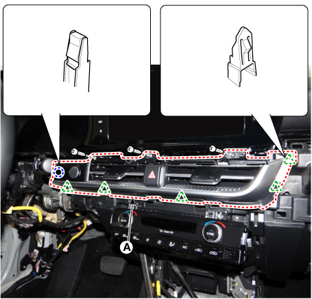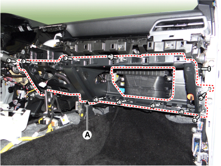 Снимите нижнюю панель аварийной подушки. (См. Crash Pad — «Нижняя панель Crash Pad») |