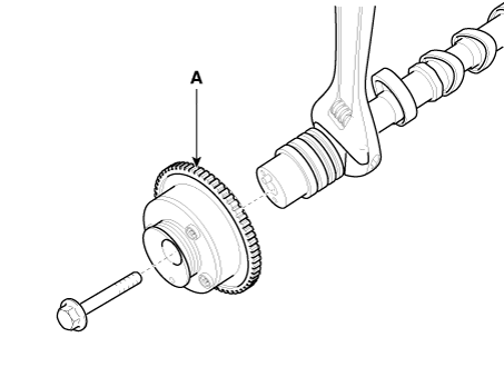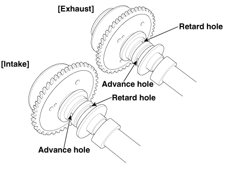 Моторное масло, вытекающее из клапана управления маслом CVVT, изменяет фазу кулачка. в направлении (опережение впуска/замедление выпуска) или в противоположном направлении (замедление впуска/замедление выпуска). Опережение) вращения двигателя за счет вращения ротора, соединенного с распределительным валом внутри кулачкового фазовращателя.