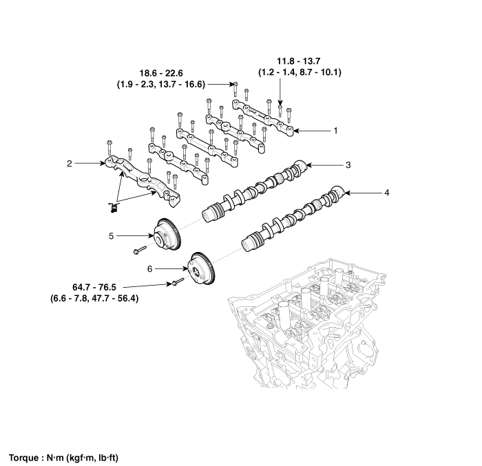 5. Выхлоп CVVT в сборе 6. Впускной CVVT в сборе |