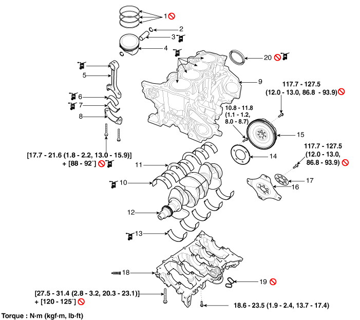 2. Стопорное кольцо 3. Поршневой палец 4. Поршень 5. Шатун 6. Верхний подшипник шатуна 7. Нижний подшипник шатуна |