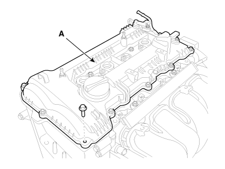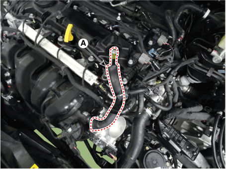 Отсоедините шланг принудительной вентиляции картера (PCV) (А).