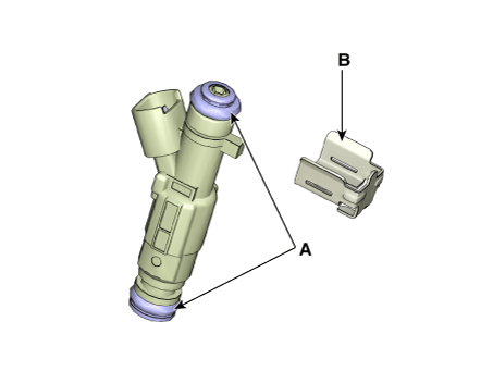 Отделите инжектор (B) от нагнетательного трубопровода (A) после удаления зажим (С).
