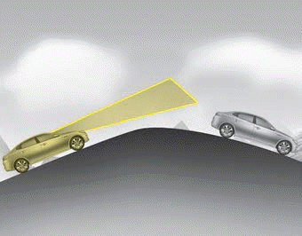 Когда FCA внезапно распознает впереди идущее транспортное средство при проезде по склону, вы можете испытать резкое замедление.