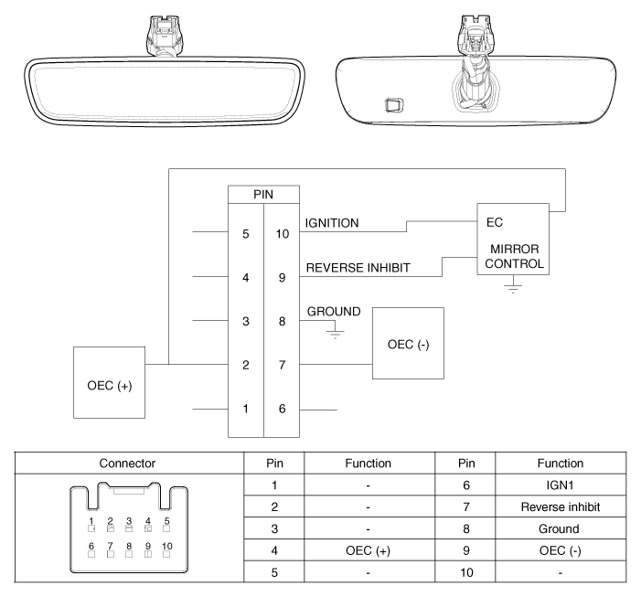 ECM (электрохроматическое внутреннее зеркало заднего вида) автоматически тускнеет, чтобы защитить глаза водителя, когда он чувствует свет, отражающийся от автомобиля позади. Датчик в зеркале определяет яркость и свет фар автомобиля сзади отражается на зеркале, химический слой внутри зеркала реагирует на бликов и регулирует коэффициент отражения от 10 до 70%. При переключении на задний ход механизм, зеркало становится ярким независимо от окружения. ЕСМ получает сигналы напряжения, заземления и передачи заднего хода, а также использует два датчика для измерения яркого света. интенсивность.