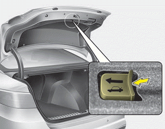 Ваш автомобиль оснащен рычагом аварийного открывания багажника, расположенным внутри