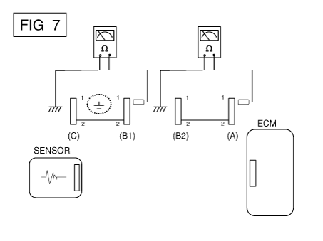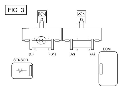 Отсоедините разъем (В) и измерьте сопротивление между