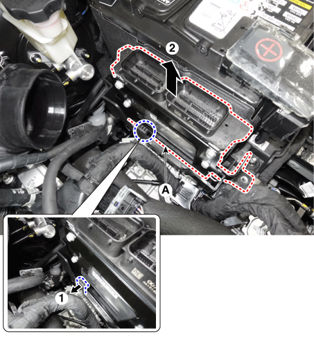 Отсоедините разъем блока ЕСМ (А).
