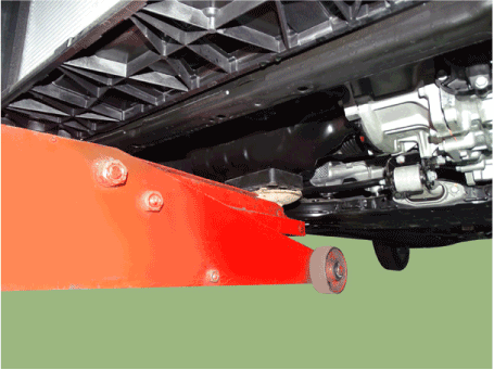 Установите домкрат под край нижнего масляного поддона, чтобы поддержать двигатель.