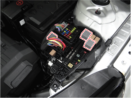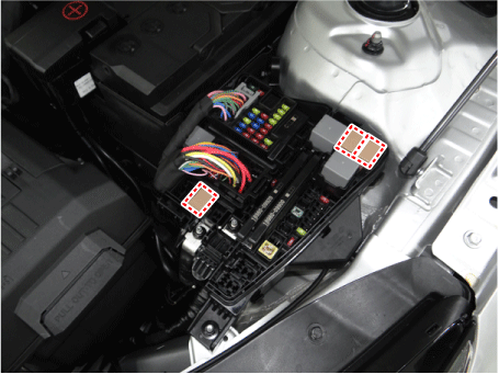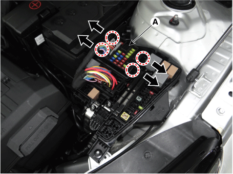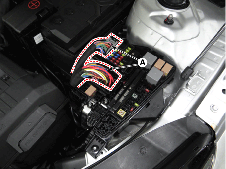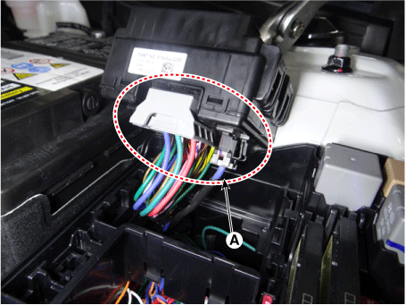 Отсоедините разъемы (А) от блока печатной платы моторного отсека.