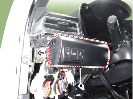 Снимите выключатель бокового аварийного щитка (А) после ослабления крепежных винтов.