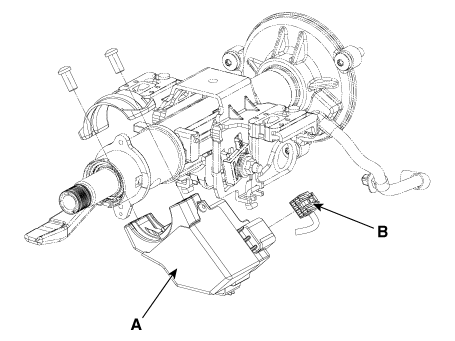 Снимите электронный замок рулевой колонки (А), ослабив крепления болты после отсоединения разъема (B).