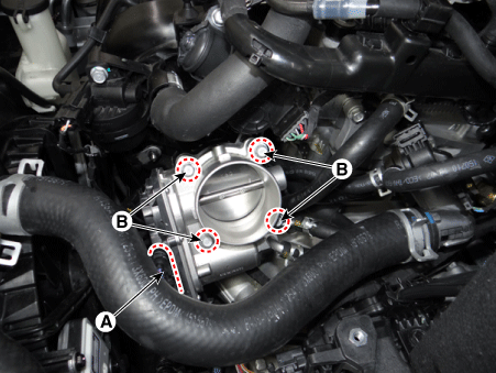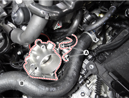 Отсоединив разъем (A), снимите модуль ETC, ослабив болты (В).