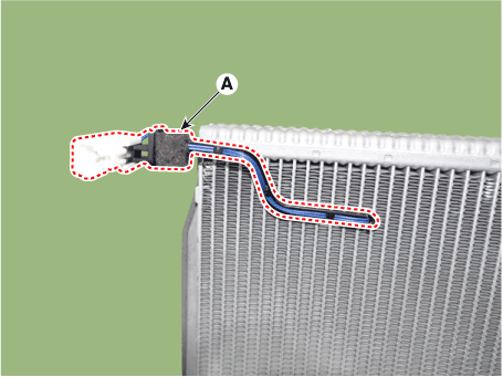 Отделите датчик температуры испарителя (А) от сердцевины испарителя.