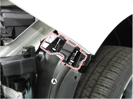 Ослабьте крепежные винты и снимите боковое крепление переднего бампера. кронштейн (А).