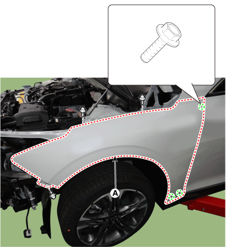 Ослабьте крепежные болты и снимите панель крыла (А).