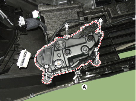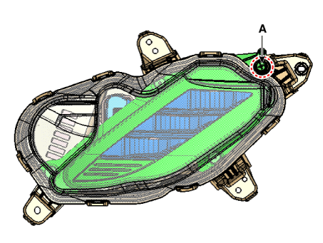 Снимите блок передних противотуманных фар (А), ослабив крепежные винты.