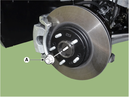 Снимите уплотнительную гайку (А) с передней оси.
