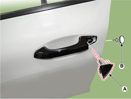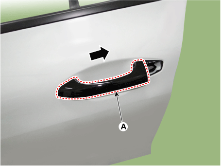 Снимите наружную ручку передней двери (А), сдвинув ее назад.