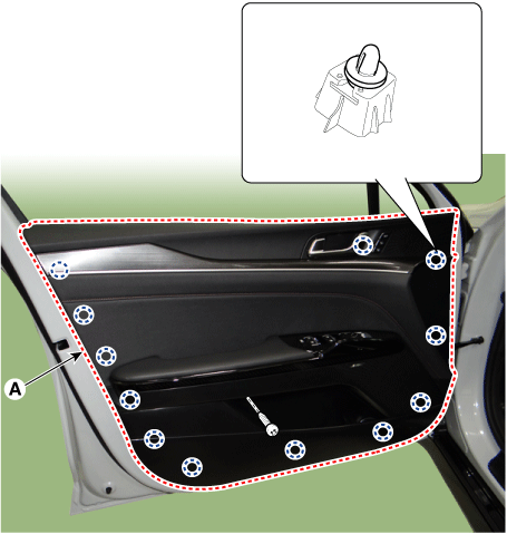 Ослабьте крепежный винт и снимите обшивку передней двери (А).