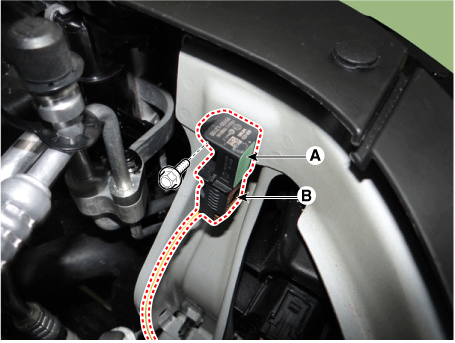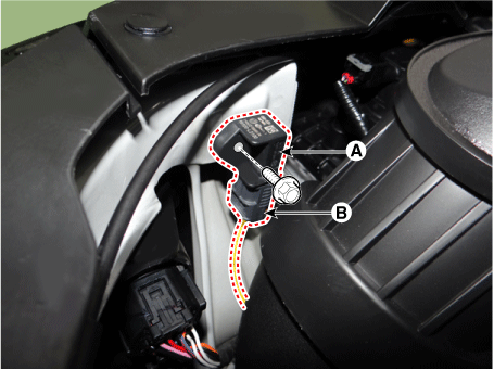 Снимите датчик лобового столкновения (А), ослабив болт после отсоединения
