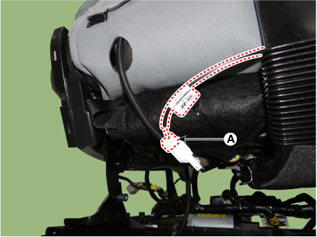 Отсоедините разъем обогрева переднего сиденья (А).