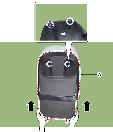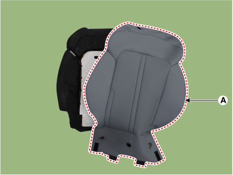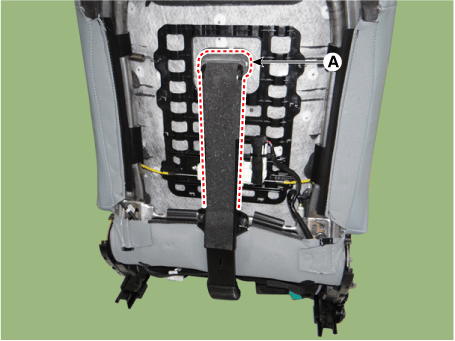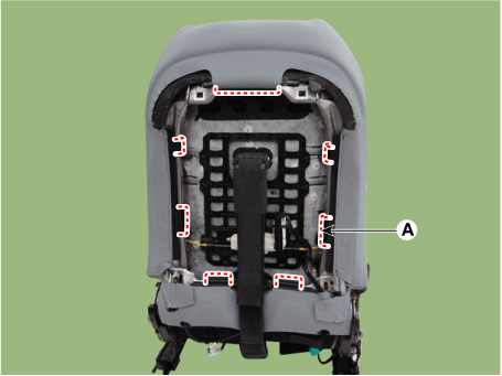 Снимите защиту спинки переднего сиденья в сборе (А) и снимите переднюю спинка сиденья в сборе с рамой переднего сиденья.