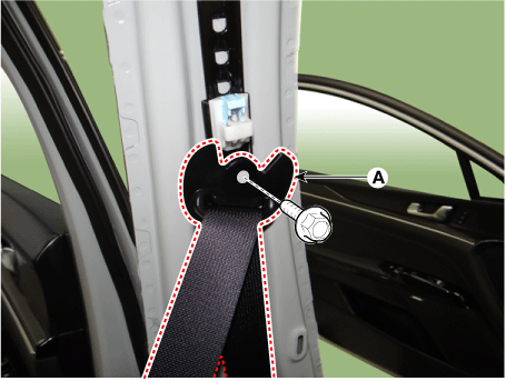 Ослабьте болт крепления верхнего анкера переднего ремня, снимите передний ремень. верхний анкер (А).
