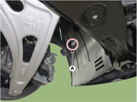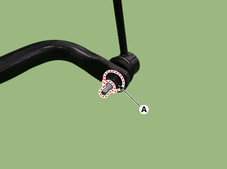 Ослабьте гайку (А) и отсоедините тягу стабилизатора поперечной устойчивости от стабилизатора. бар.