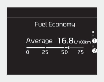 • В этом режиме отображается мгновенная экономия топлива за последние несколько секунд, когда скорость автомобиля превышает 8 км/ч (5 миль/ч).