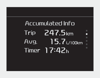 Отображает накопленную информацию, начиная с пробега/эффективности использования топлива/времени по умолчанию точка.