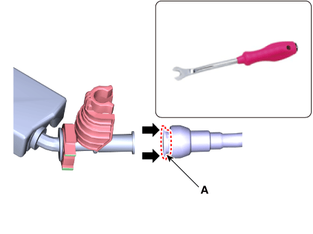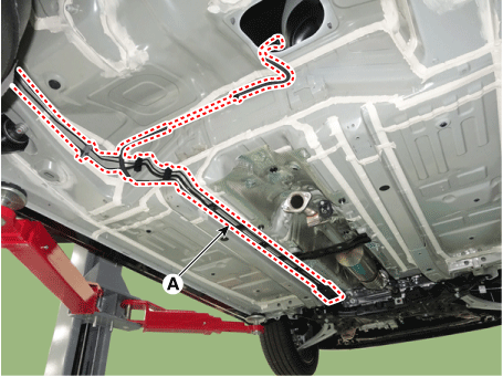 Снимите топливопровод (А) с автомобиля, предварительно сняв фиксирующие зажимы.