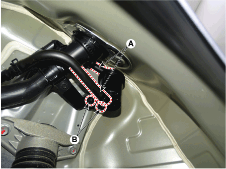 Отсоедините вентиляционные шланги (А) от воздушного фильтра топливного бака. |