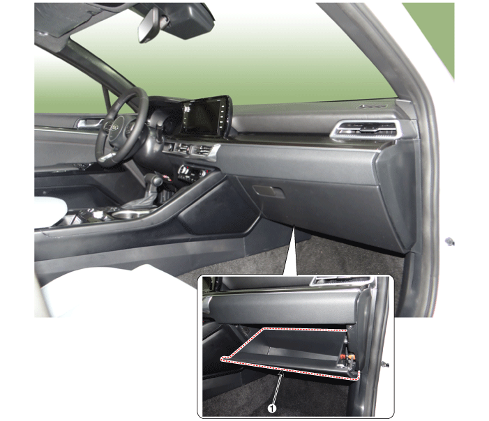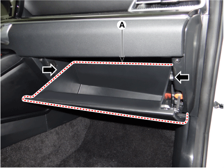 Откройте перчаточный ящик (А) в направлении стрелки.