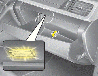 Лампа вещевого ящика загорается при открытии вещевого ящика.