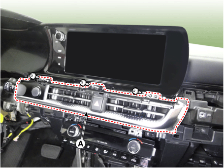 Снимите декоративную накладку центрального вентиляционного отверстия (А), ослабив крепежные винты.