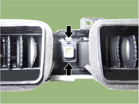 Снимите выключатель аварийной сигнализации (А), нажав на крючки.