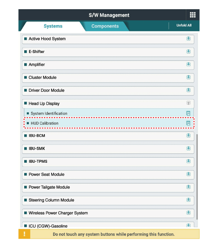 Выберите необходимые элементы калибровки и выполните «Калибровку HUD».
