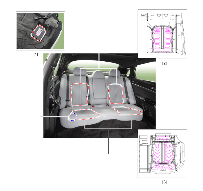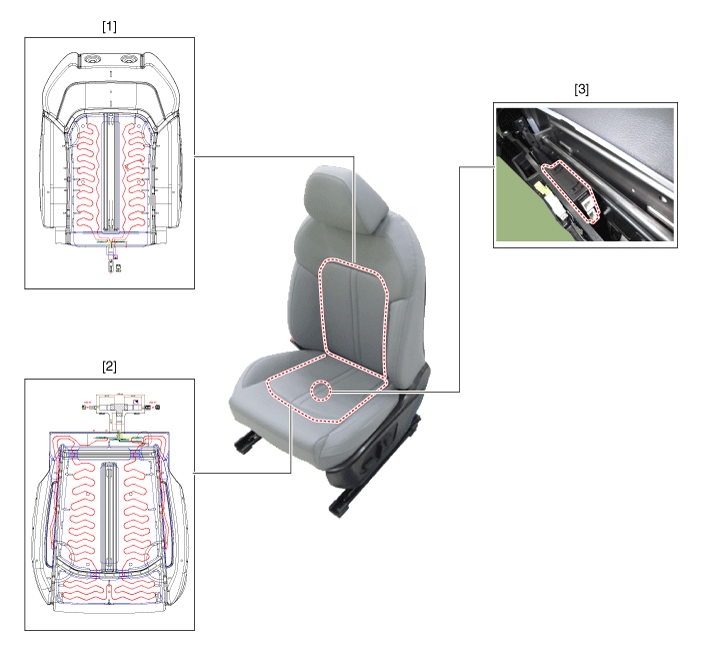 Включите обогреватель сиденья после подсоединения разъема, а затем проверьте термостат путем измерения температуры поверхности сиденья.